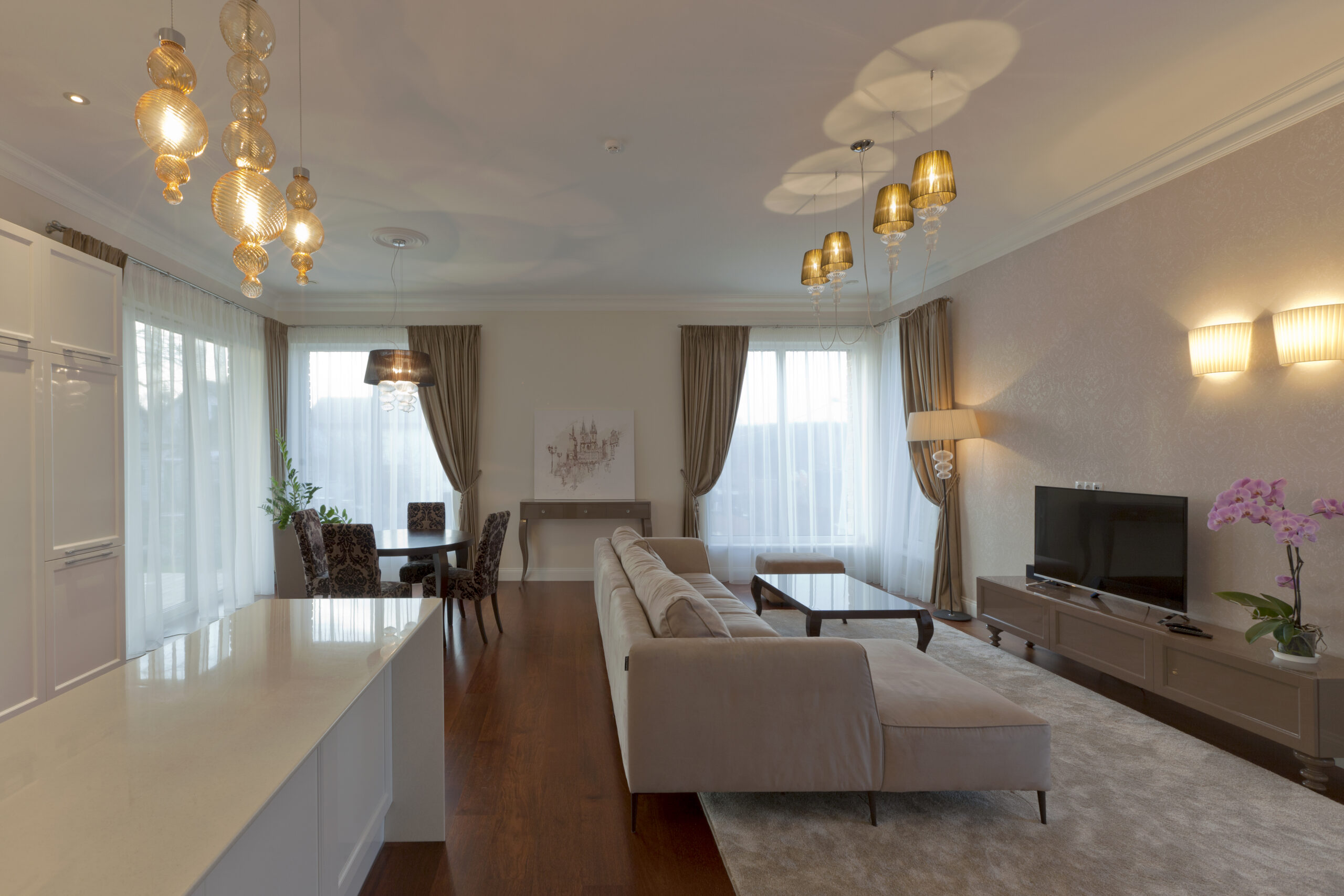 Modernios klasikos interjeras Modernios klasikos interjeras Šeimininkai norėjo į savo naujus namus įnešti gūsį prabangos, bet tuo pačiu ir modernuom elementų – taip buvo pasirinktas modernios klasikinos interjero stilius.