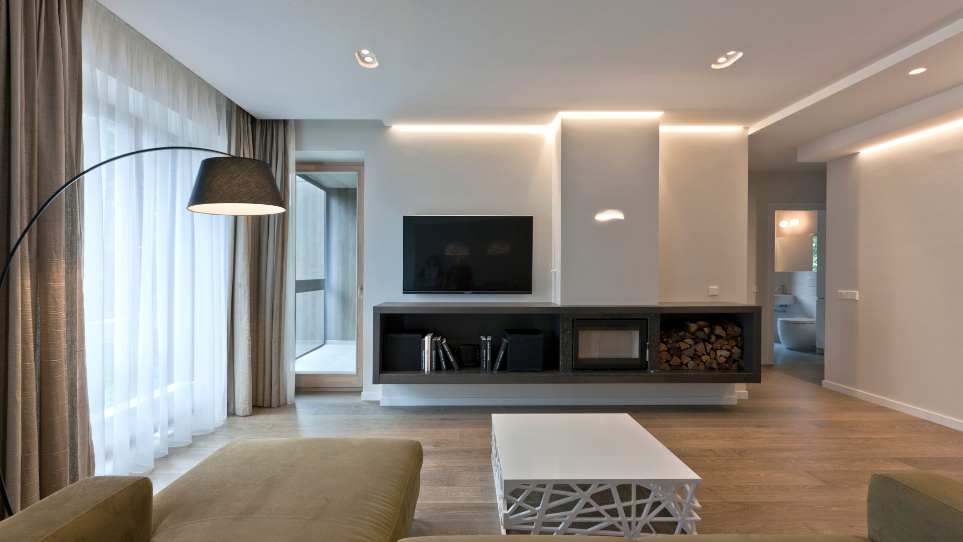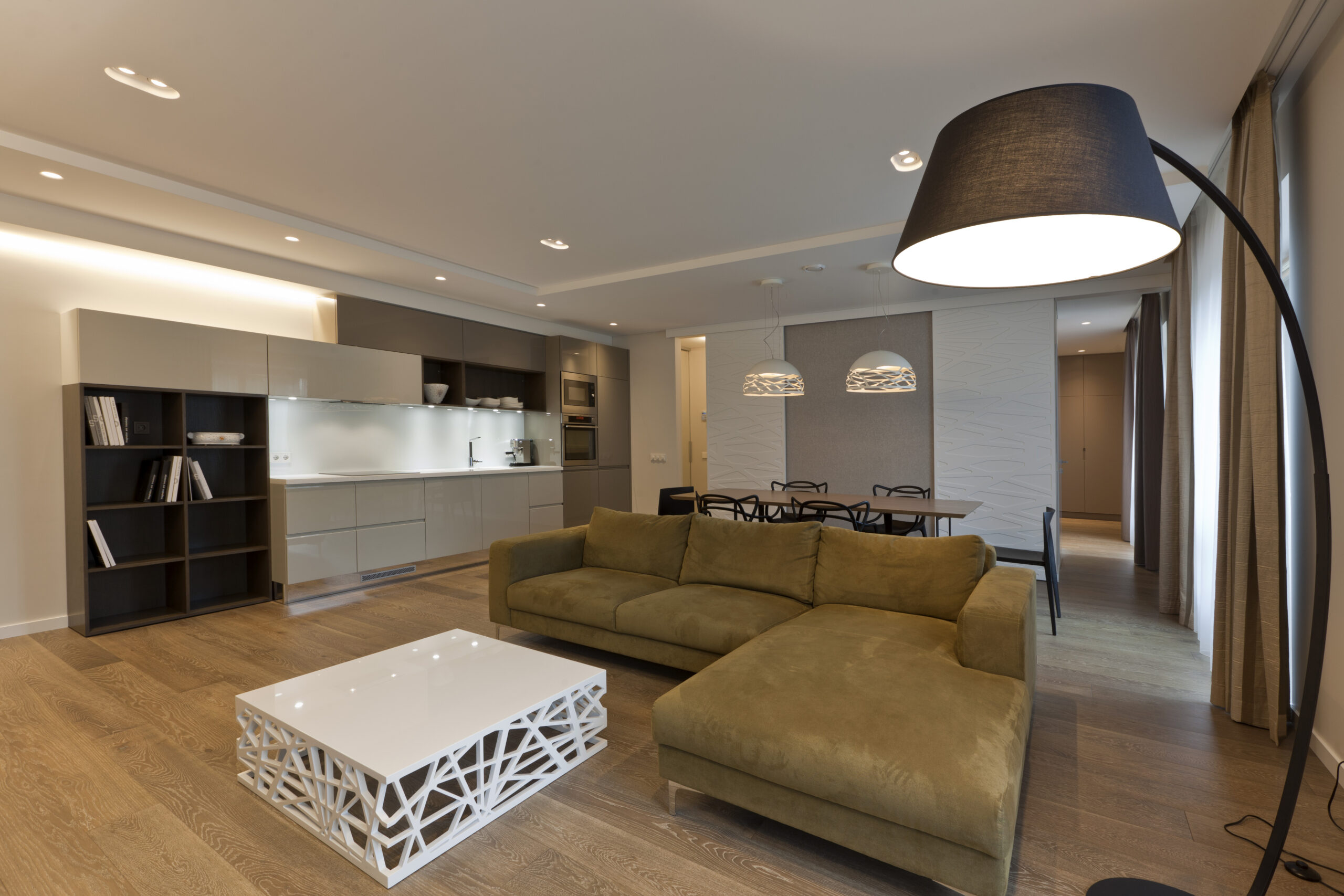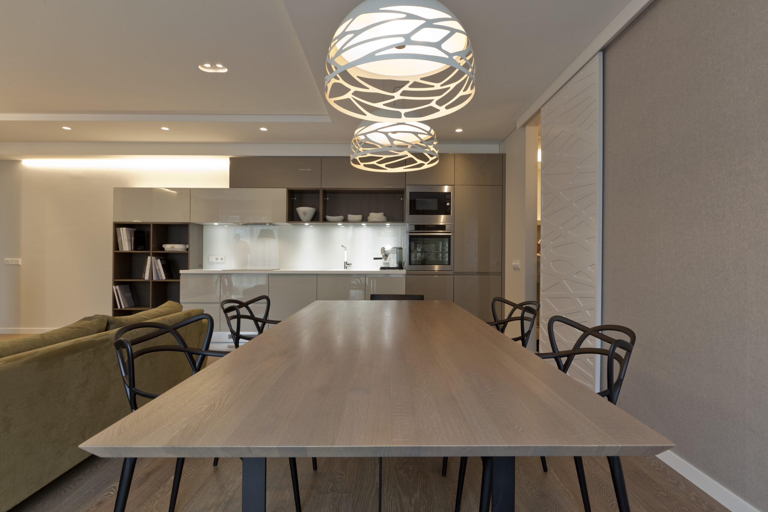 Modernus namo interjeras Modernus namo interjeras Tai namai, kur gera ir patogu būti kartu, nes viskam yra sava vieta – tiek ramiam vakarui prie židinio, tiek ir linksmai kompanijai prie didelio stalo.
